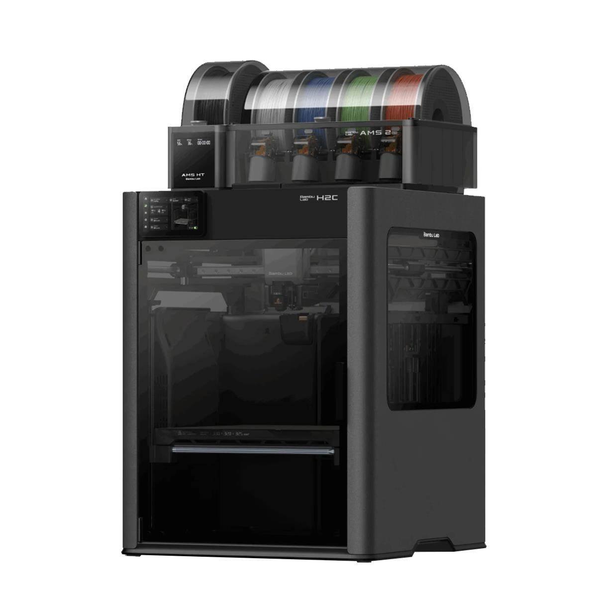 Bambu Lab H2C redefine la impresión 3D multimaterial y multicolor con su revolucionario sistema Vortek de cambio de hotend, su extrusor servo de ultra precisión y una plataforma diseñada para rendimiento profesional. Con mínima purga, alta velocidad confiable y una precisión de movimiento de 50 µm, la H2C es la impresora más avanzada de su clase.