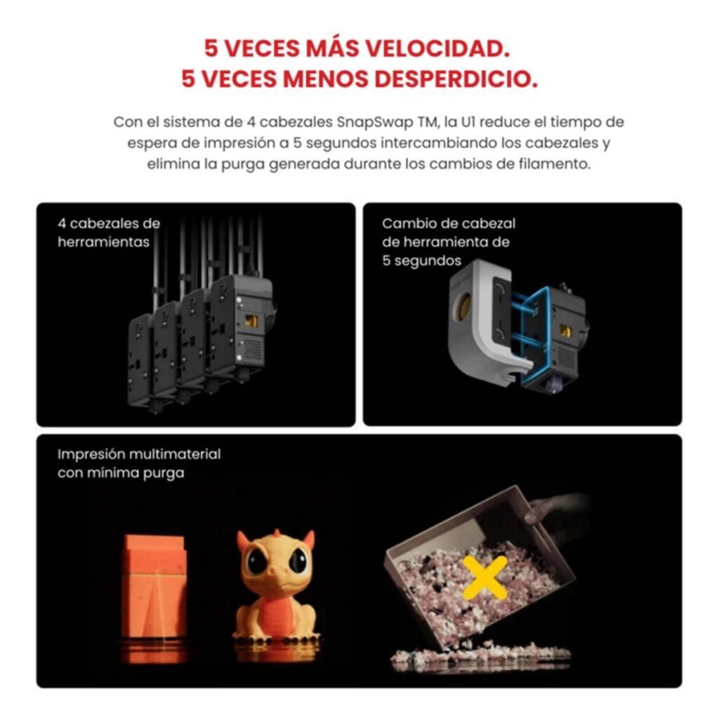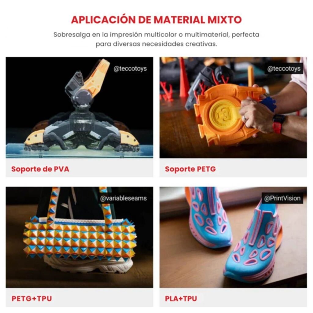 Imprime hasta 170 mm/h, permitiendo fabricar piezas en lotes o tiradas cortas con gran eficiencia.